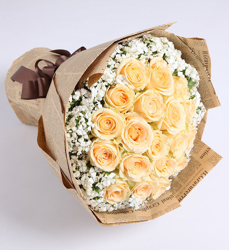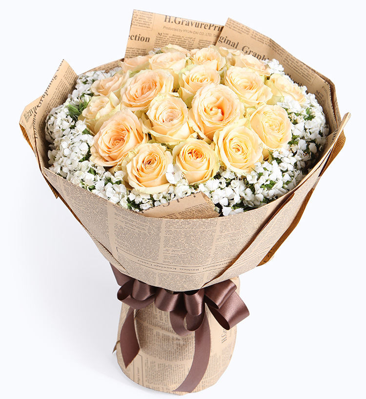 守护甜心-11朵香槟玫瑰加白色满天星