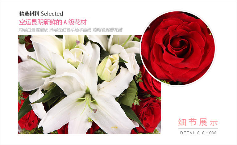 包 装:内层白色雪梨纸 外层深红色牛油平面纸 咖啡色缎带花结