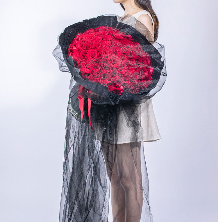 海枯石烂-99朵红玫瑰加满天星加彩灯