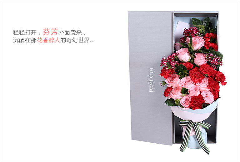 包 装:蓝灰色绝色纸1张,粉色OPP雾面纸1米,白绿粗条纹罗文带1米,魔力铁山灰盒(大)