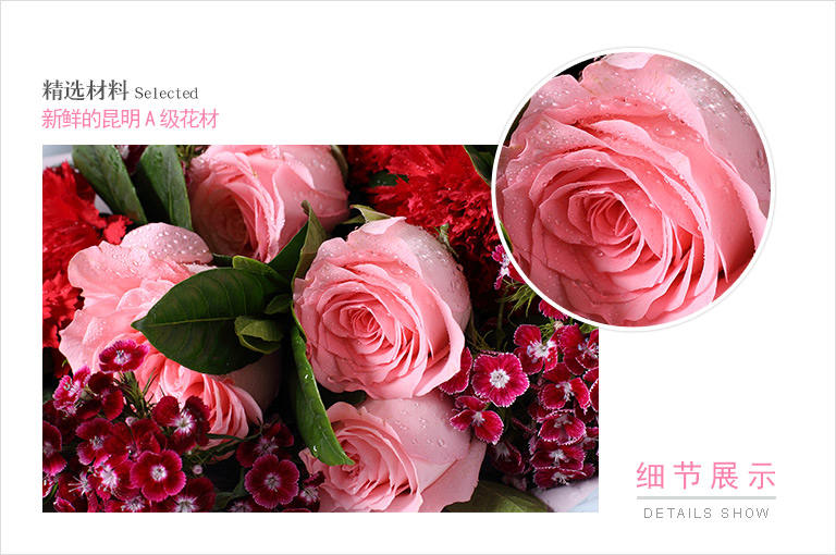 忘情巴黎-33枝红玫瑰,石竹梅20枝