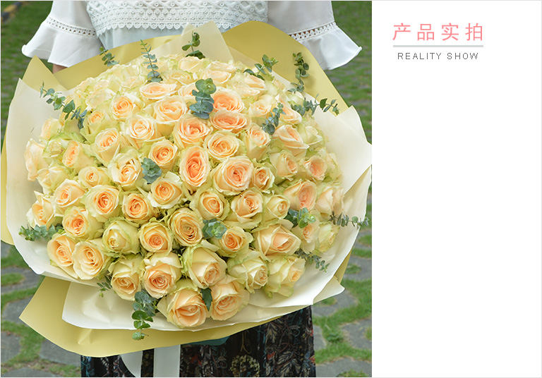 海枯石烂-99朵红玫瑰加满天星加彩灯
