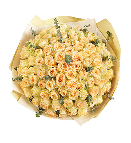 一路向阳-韩式花束系列:向日葵3枝、香槟玫瑰9枝、橙色多头玫...