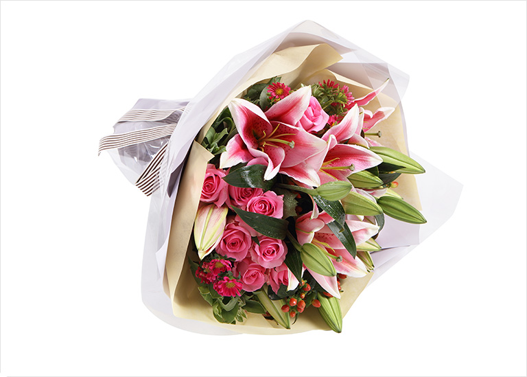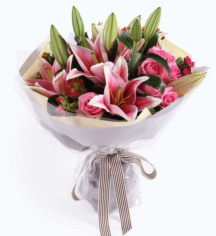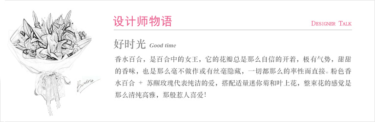 包 装:内层黄色不织布,外层浅紫/香芋紫人造不织布,玻璃纸,白咖罗纹带