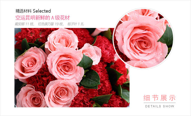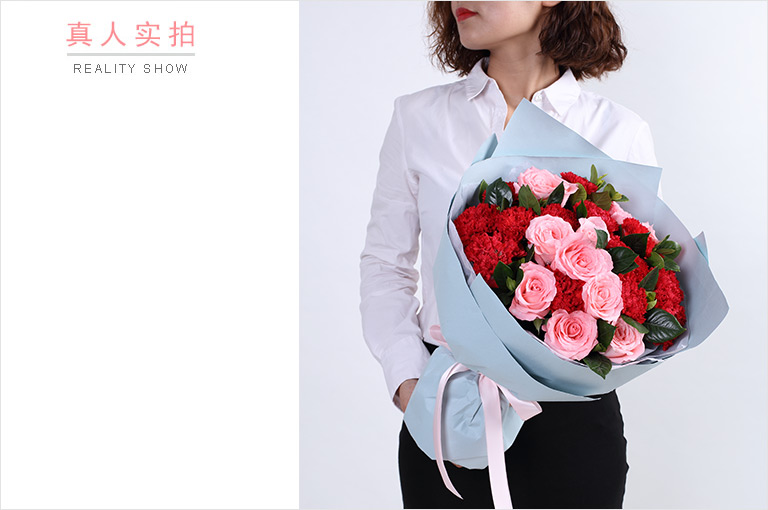 忘情巴黎-33枝红玫瑰,石竹梅20枝