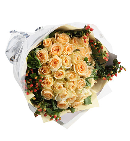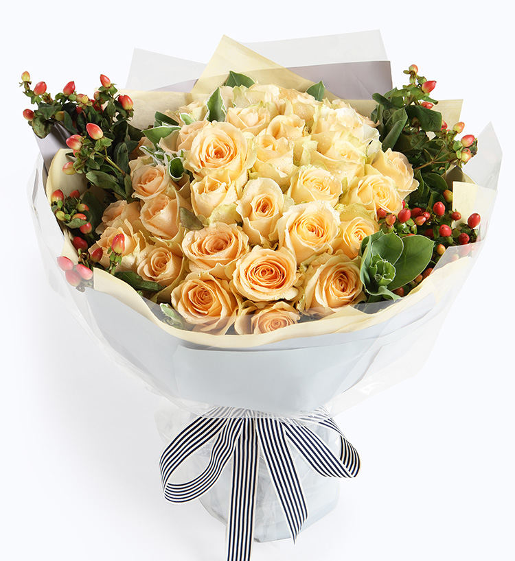守护甜心-11朵香槟玫瑰加白色满天星