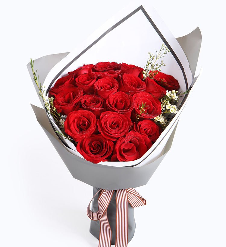 忘情巴黎-33枝红玫瑰,石竹梅20枝
