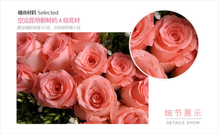 忘情巴黎-33枝红玫瑰,石竹梅20枝