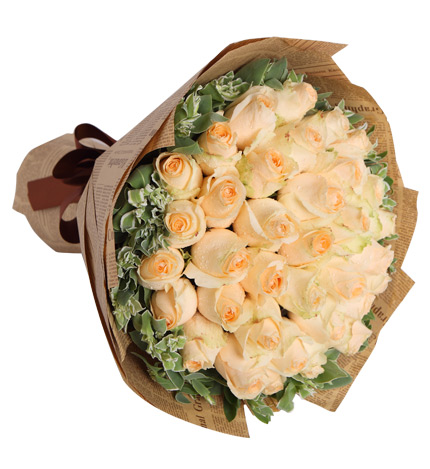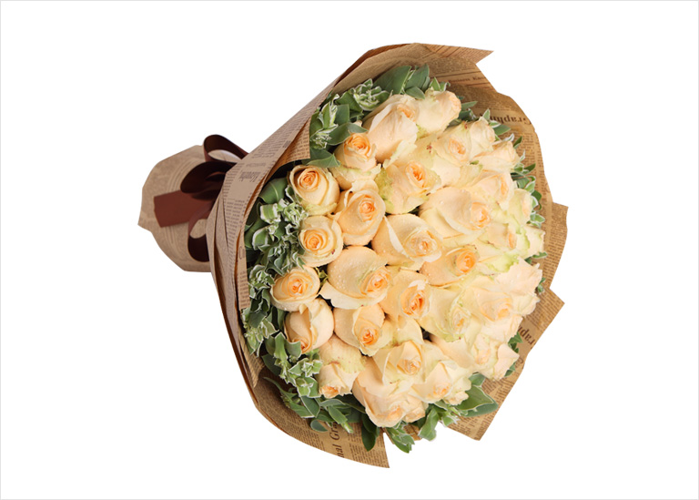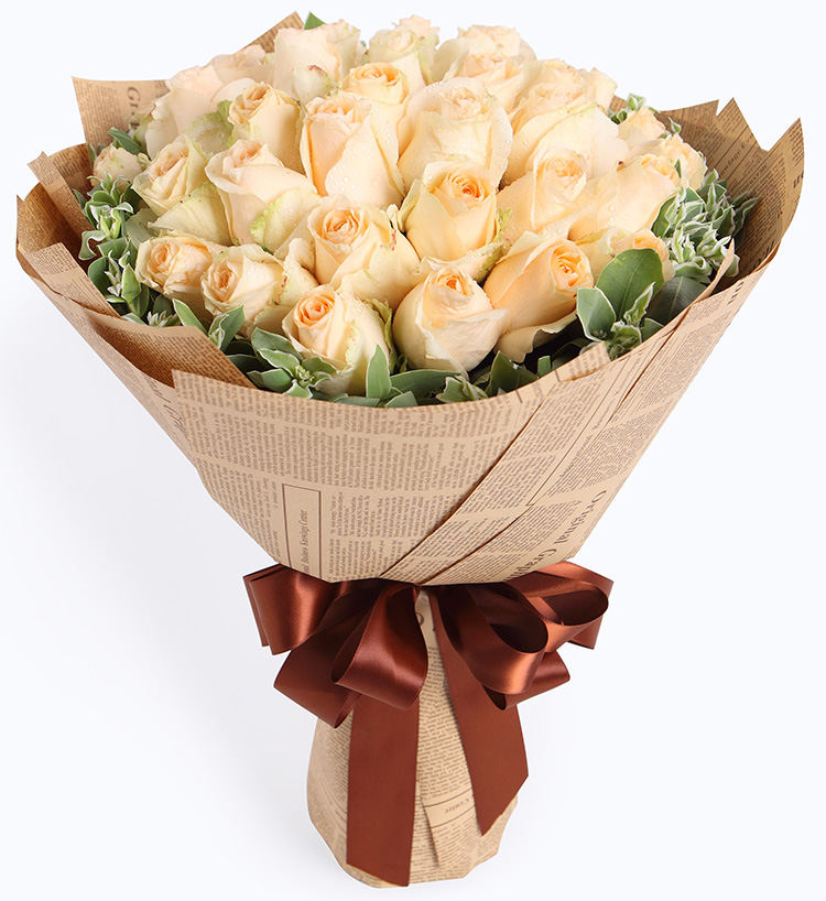 包 装:咖啡色英文报纸,咖啡色缎带花结