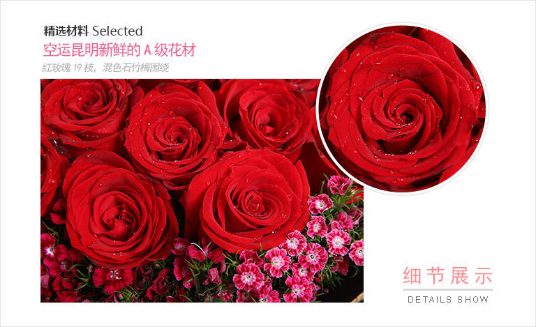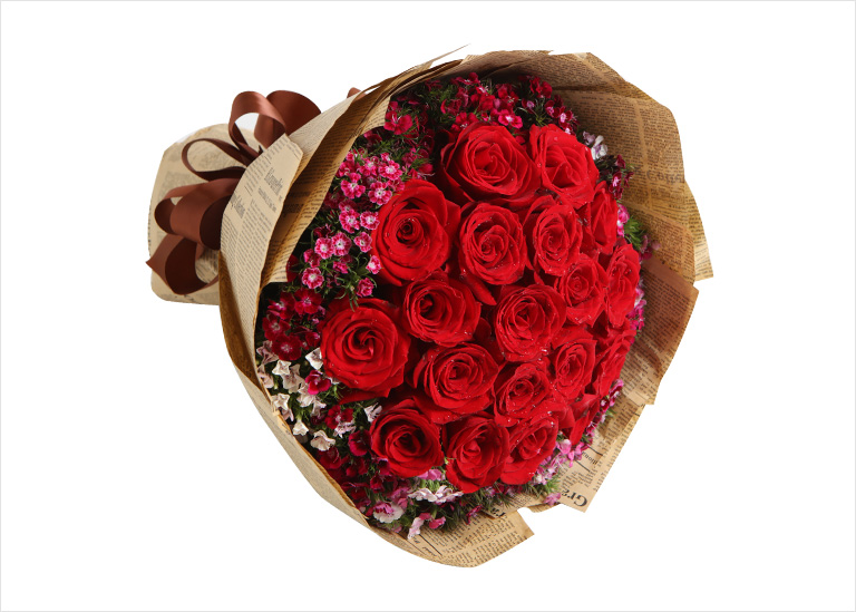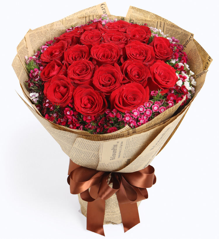 忘情巴黎-33枝红玫瑰,石竹梅20枝