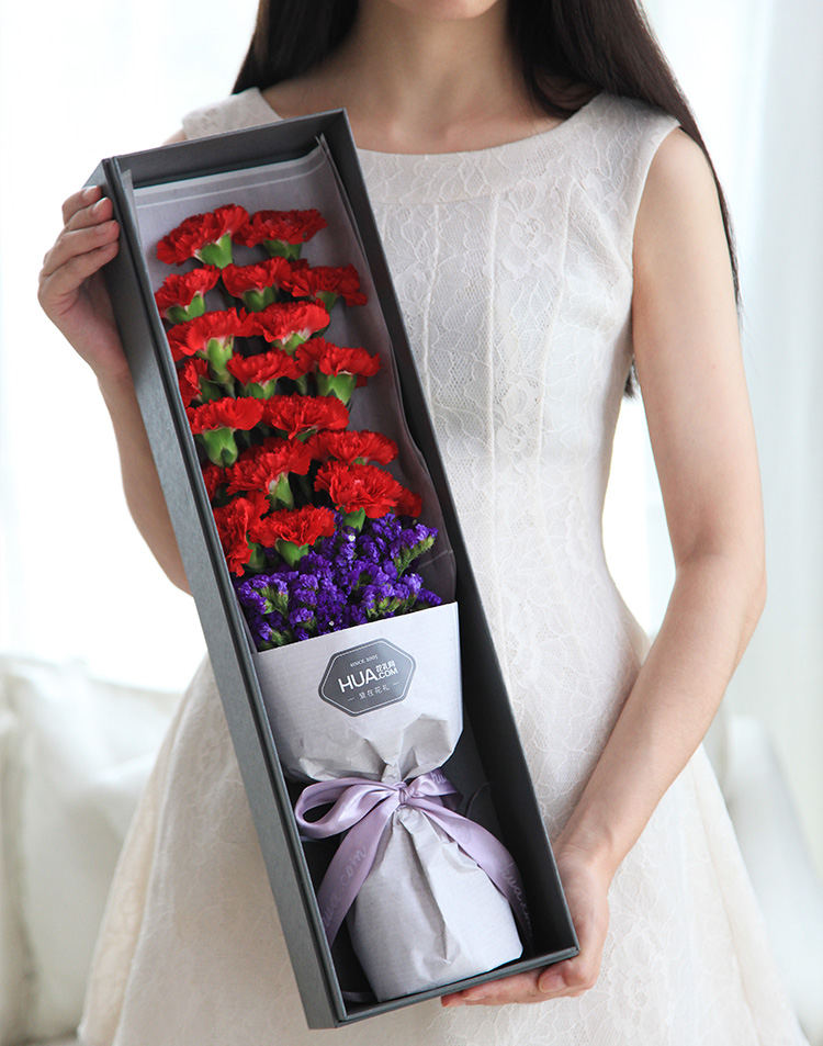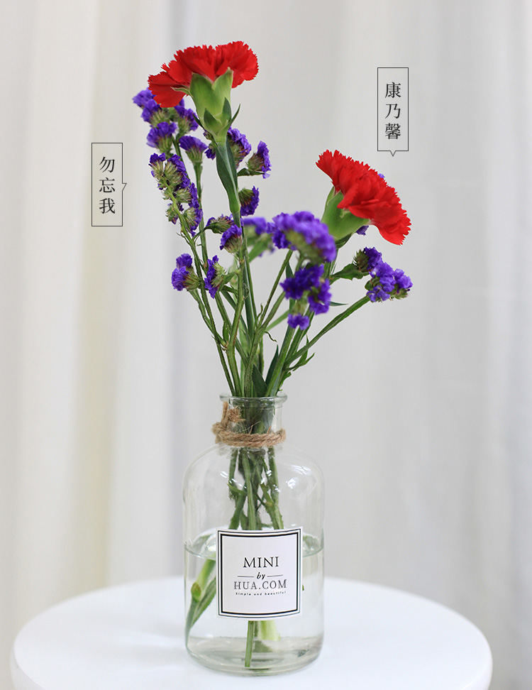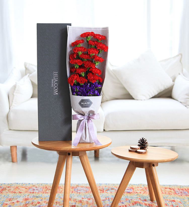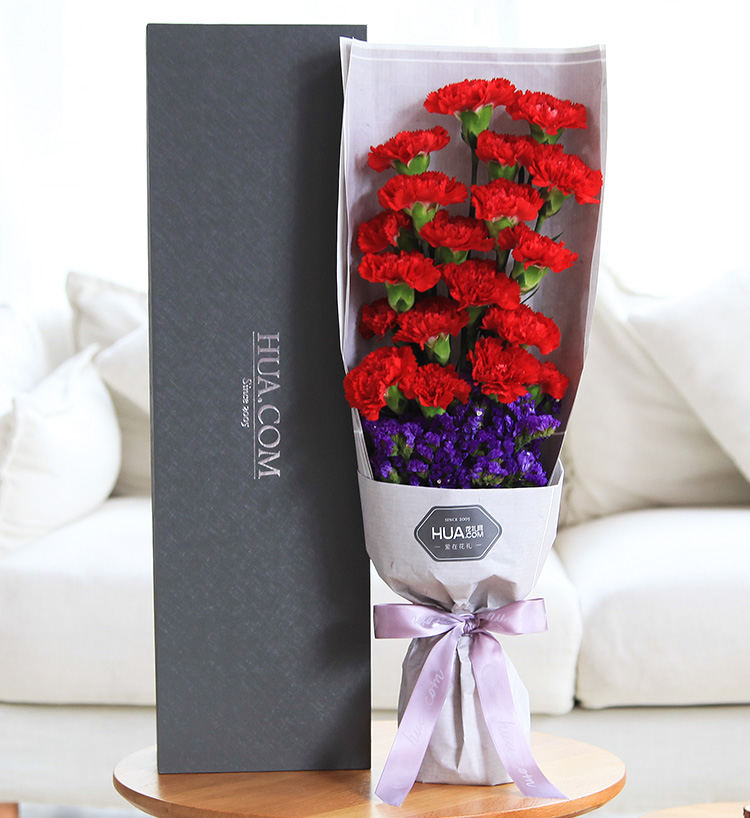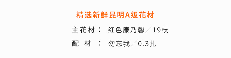 产品名称 : 最思恋-红色康乃馨19枝,勿忘我0.3扎