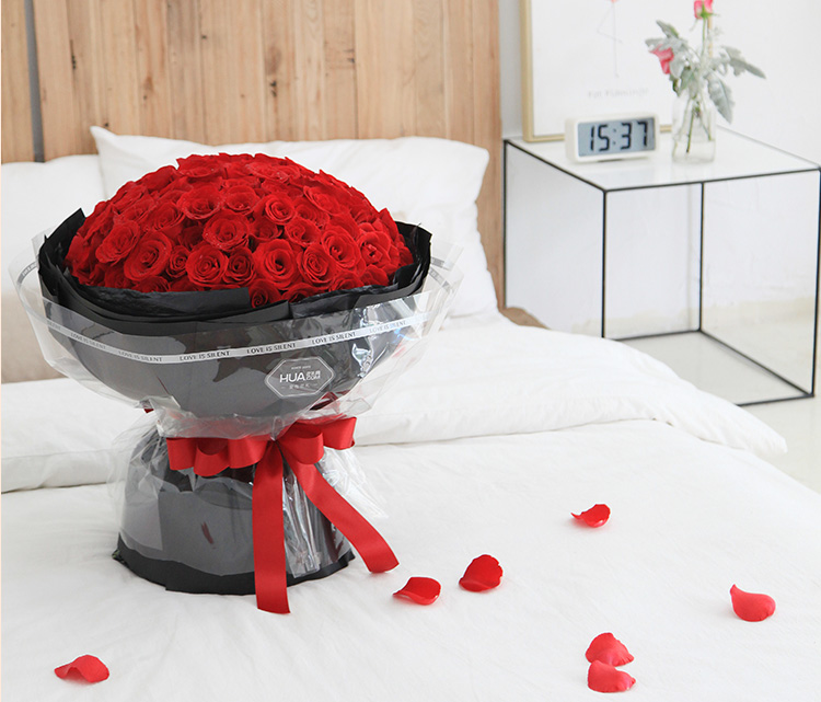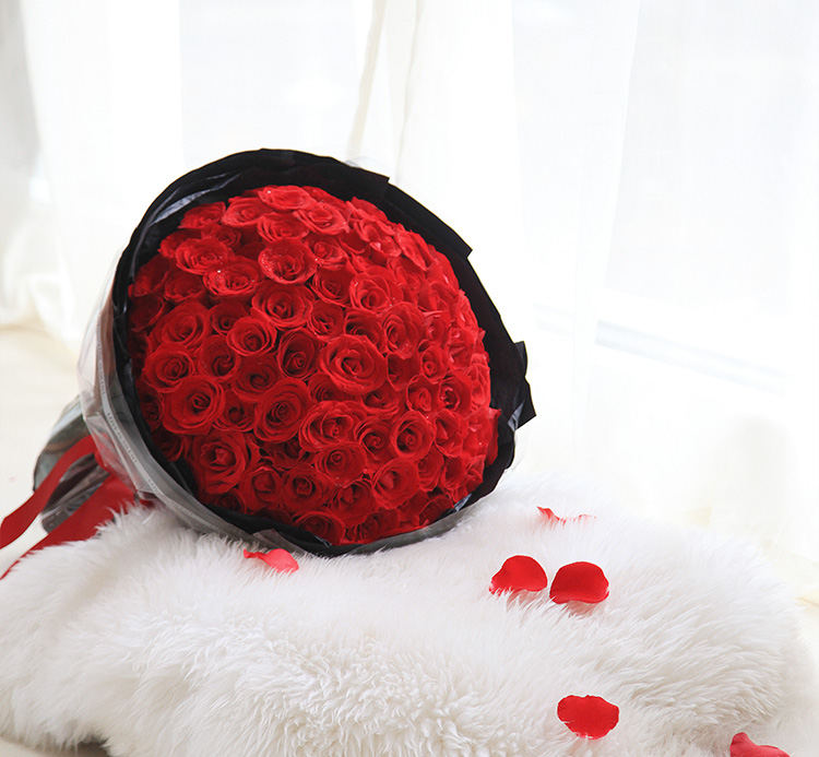 海枯石烂-99朵红玫瑰加满天星加彩灯