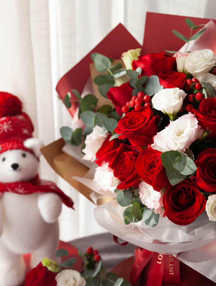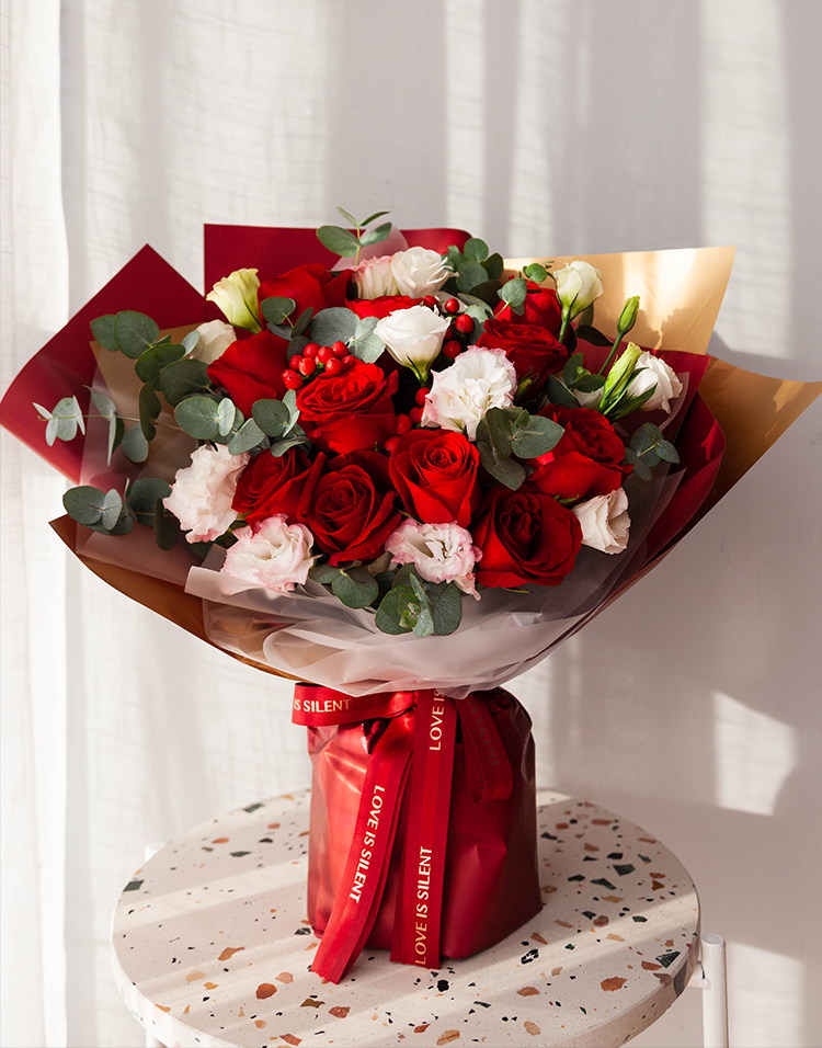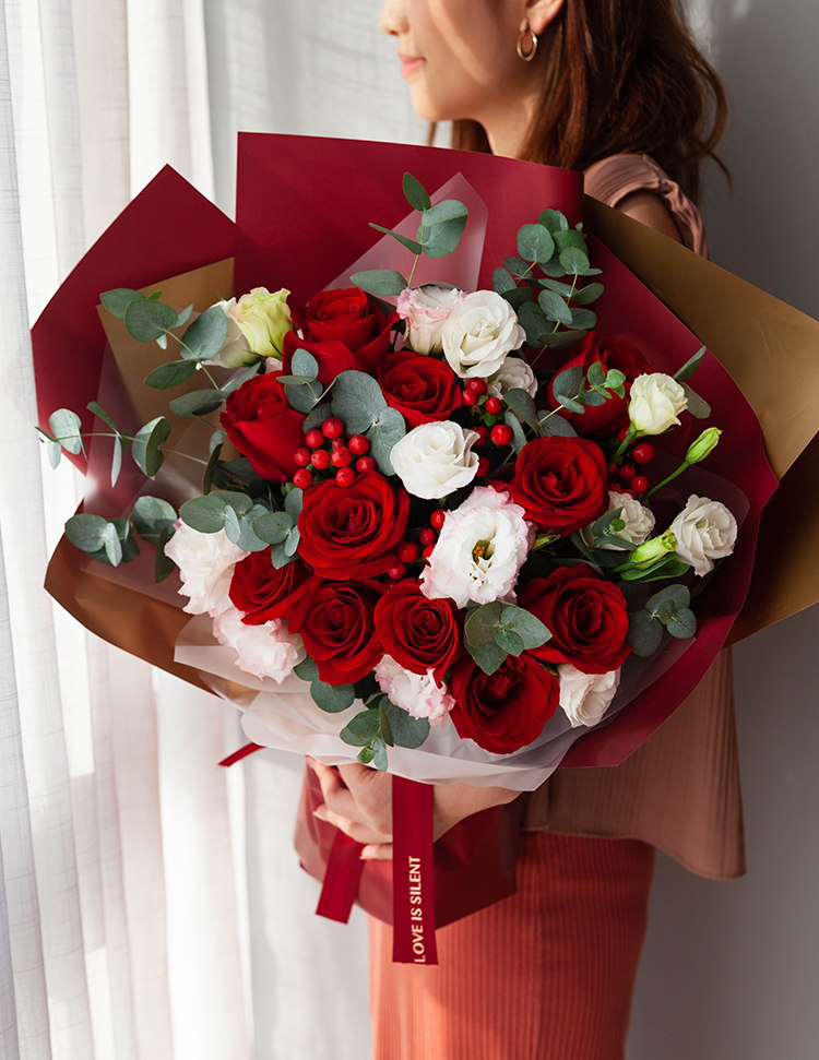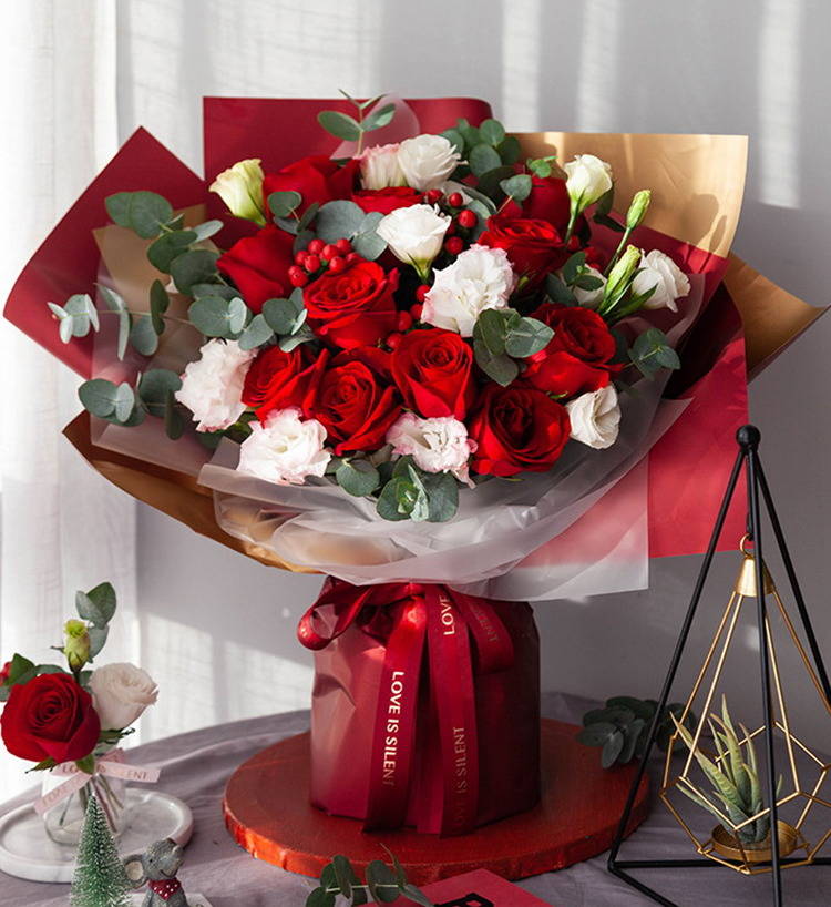 忘情巴黎-33枝红玫瑰,石竹梅20枝
