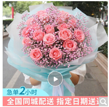 海枯石烂-99朵红玫瑰加满天星加彩灯