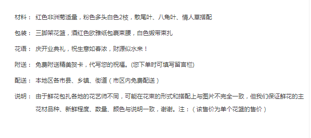 红色康乃馨11枝,粉色勿忘我3枝、尤加利10枝
