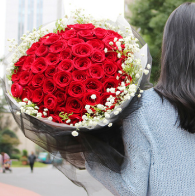 海枯石烂-99朵红玫瑰加满天星加彩灯