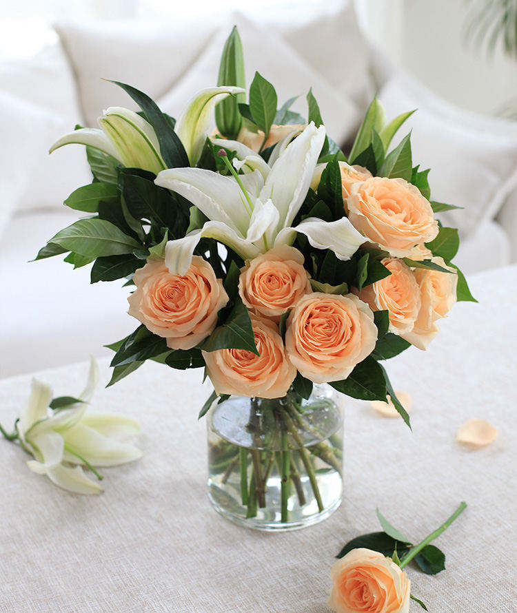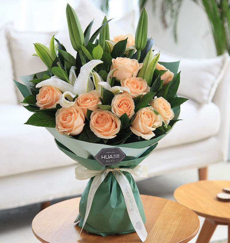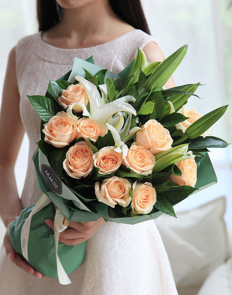 守护甜心-11朵香槟玫瑰加白色满天星