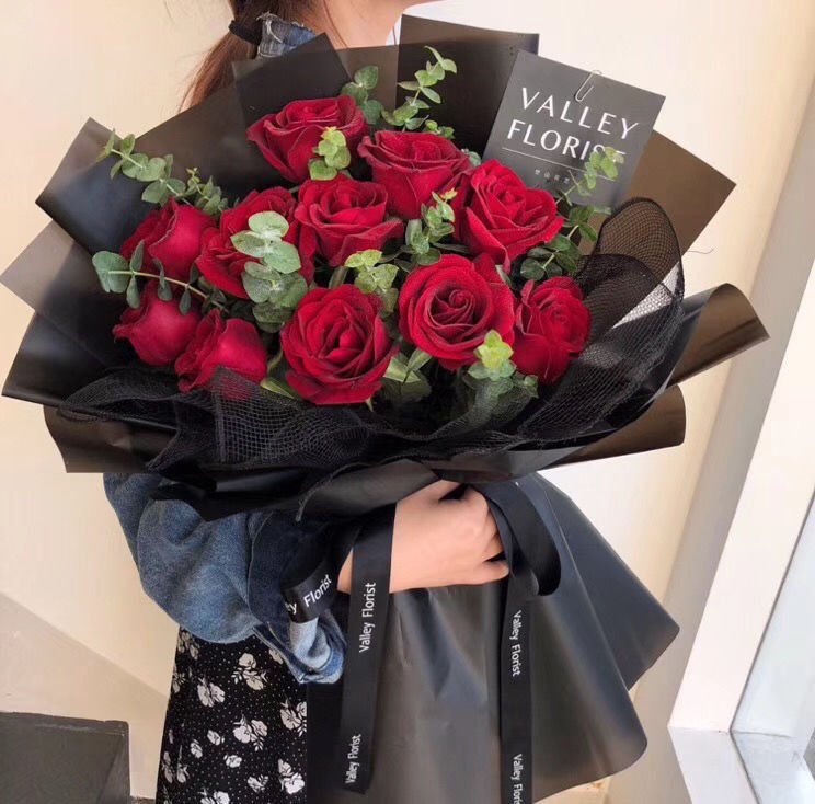 执手相依-11朵红玫瑰 尤加利搭配
