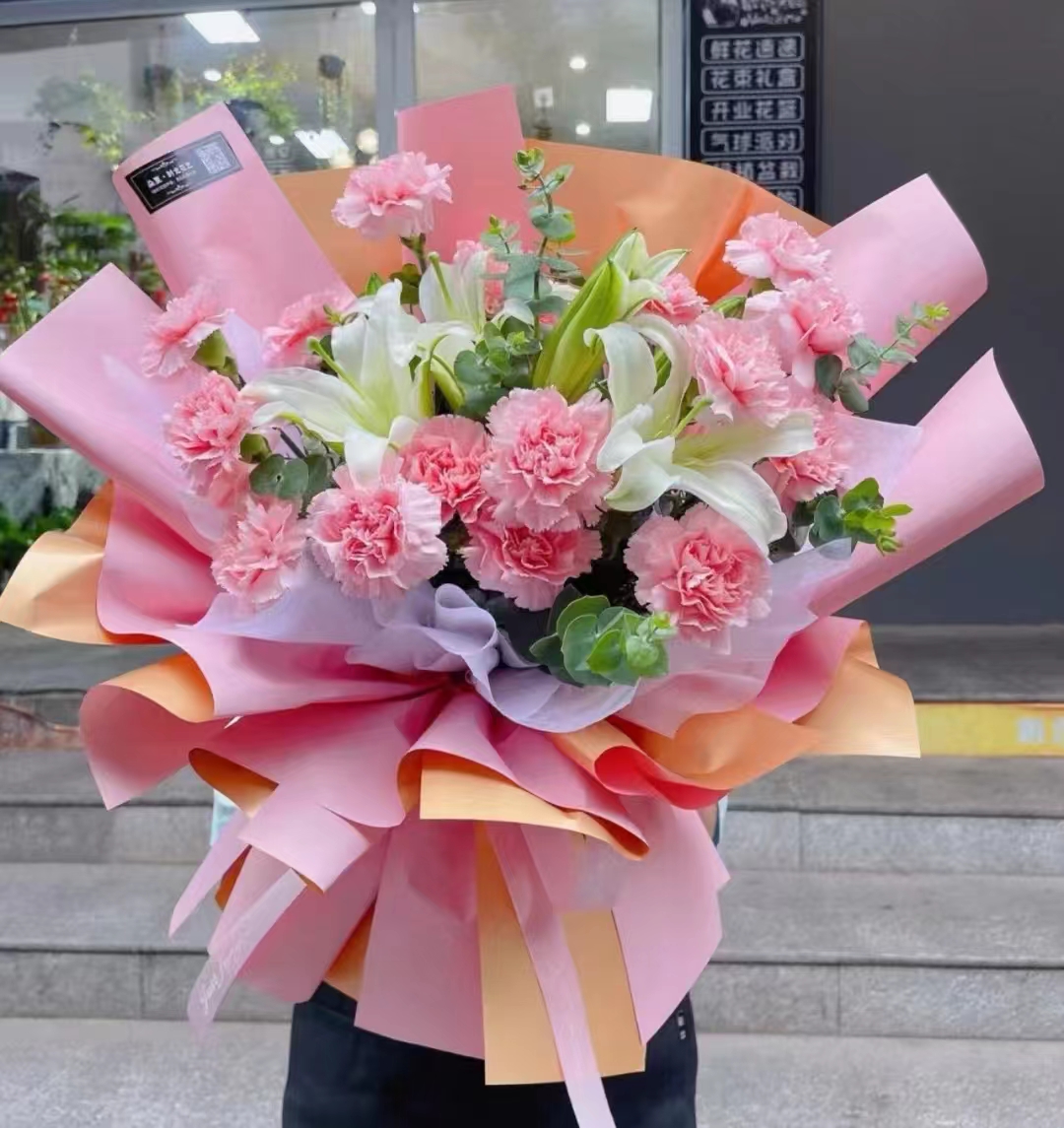 产品名称 : 康乃馨+百合/妇女节/送长辈