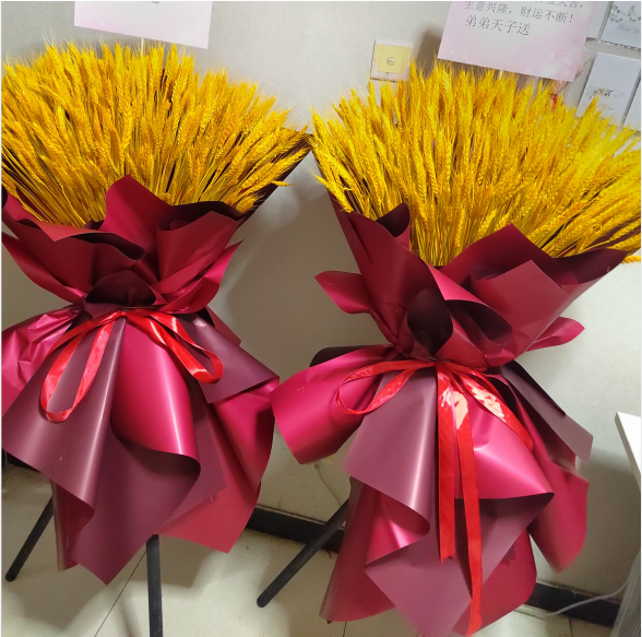 红色康乃馨11枝,粉色勿忘我3枝、尤加利10枝