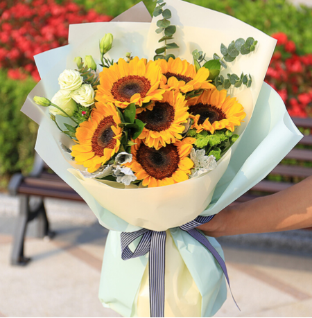 考试顺意,如鱼得水-9朵向日葵搭配绿色小雏菊、尤加利