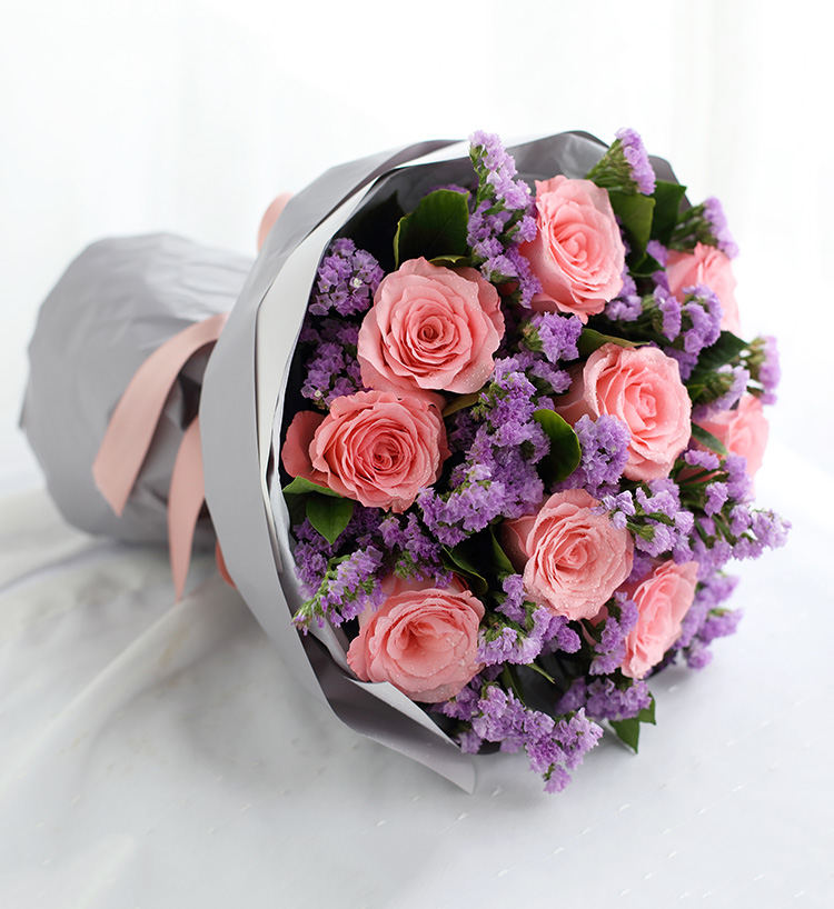 包装:白色雪梨纸,浅紫/香芋紫人造纸,豆沙色缎带花结