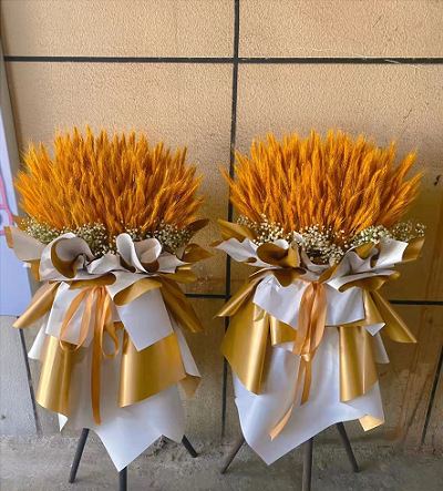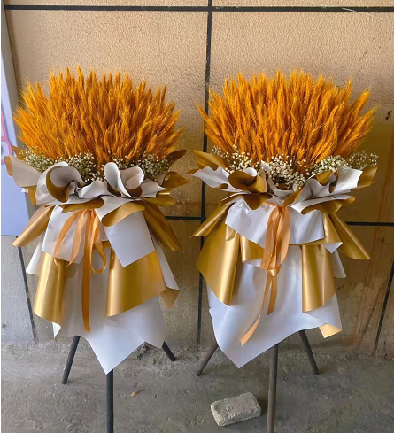 10朵红玫瑰,10朵香槟玫瑰,3支向日葵,尤加利栀子叶等绿叶丰满间插
