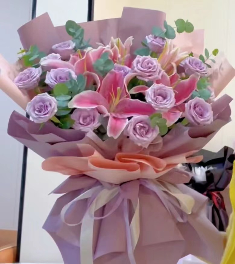 清新祝福-19支海洋之歌.2支多头粉百合.尤加利