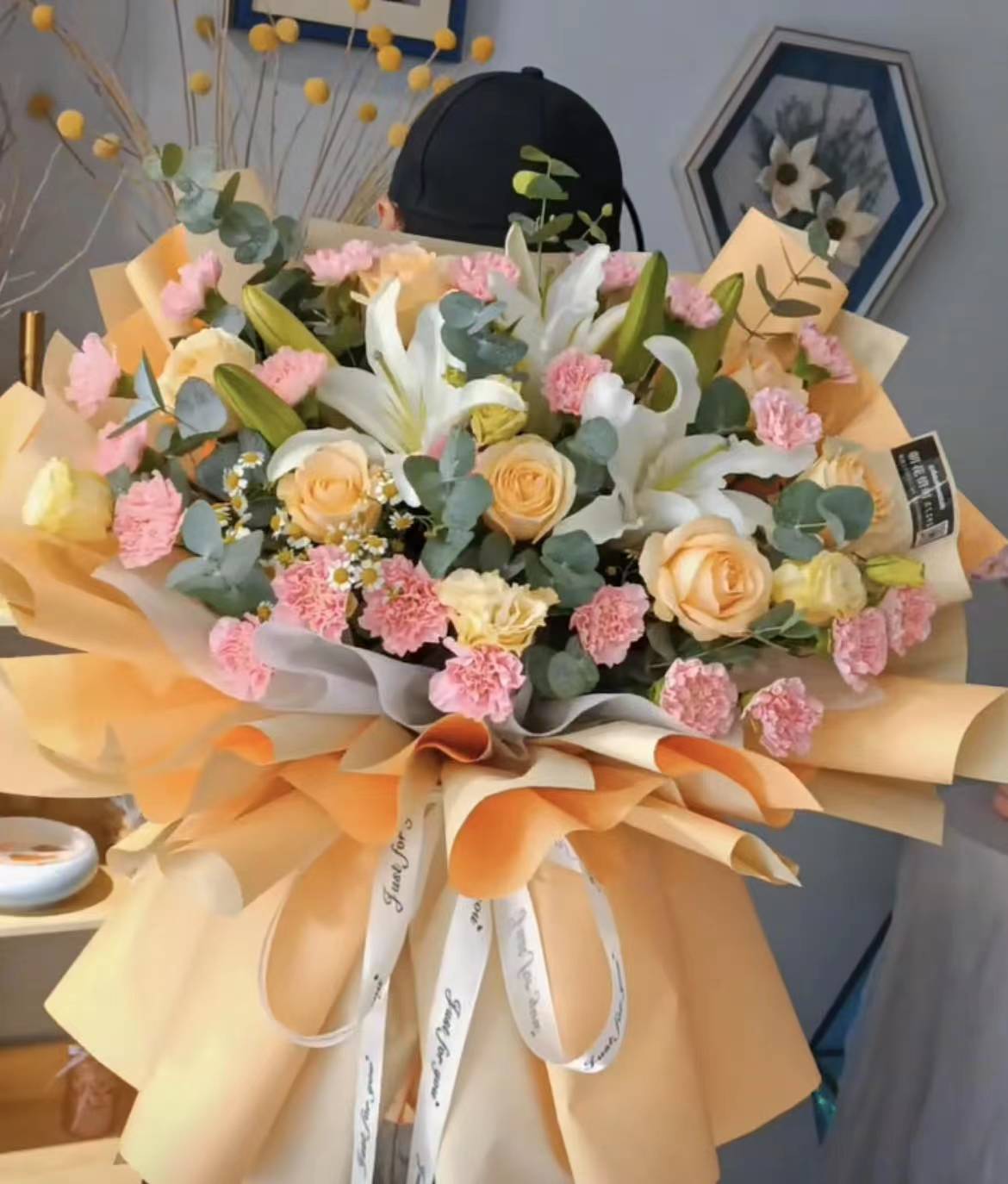万事顺心-11支香槟玫瑰.22支粉色康乃馨.3支多头百合