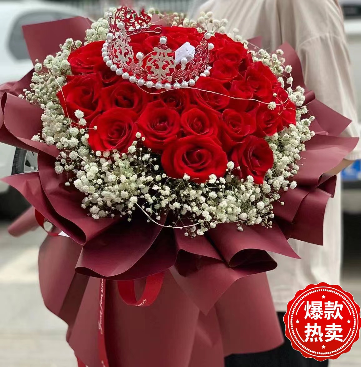 产品名称 : 朝思暮想 33支玫瑰加满天星加皇冠