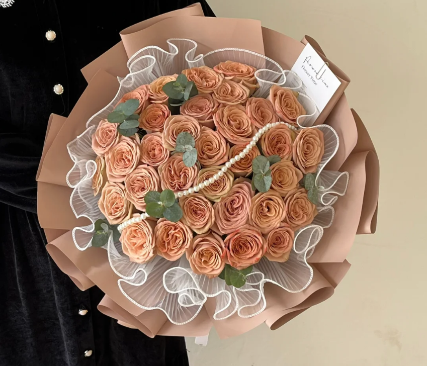 产品名称 : 卡布奇诺之恋-材料:33枝卡布奇诺玫瑰