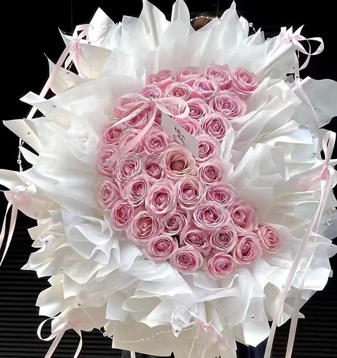 心上人-52支粉玫瑰月亮造型