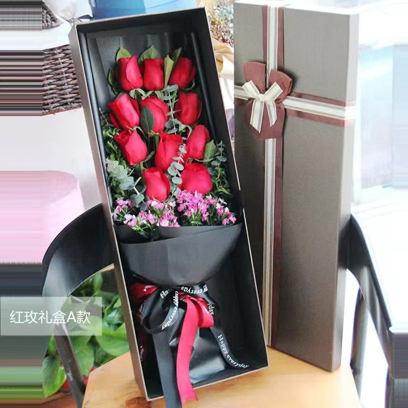 海枯石烂-99朵红玫瑰加满天星加彩灯