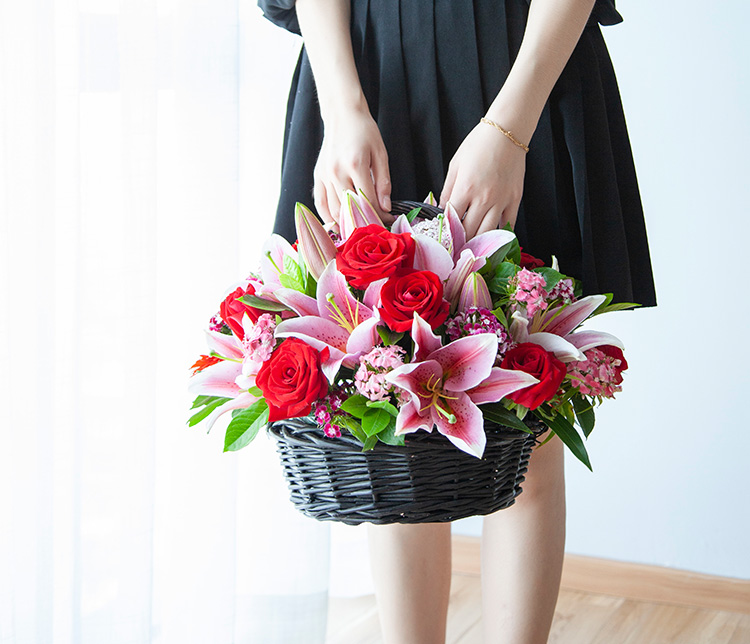 包装:内层紫红色不织布,外层粉色白牛皮纸,玫红色缎带花结